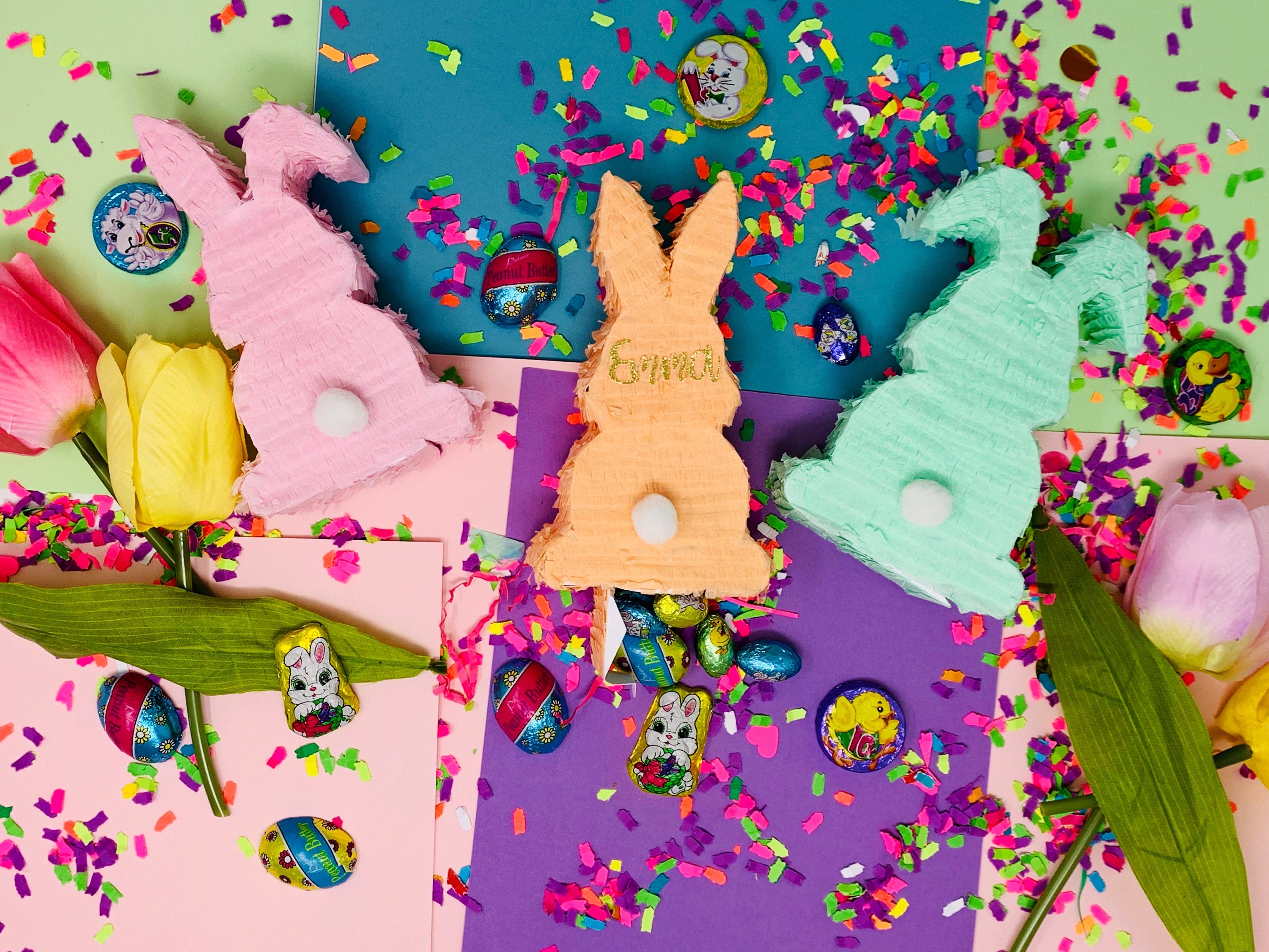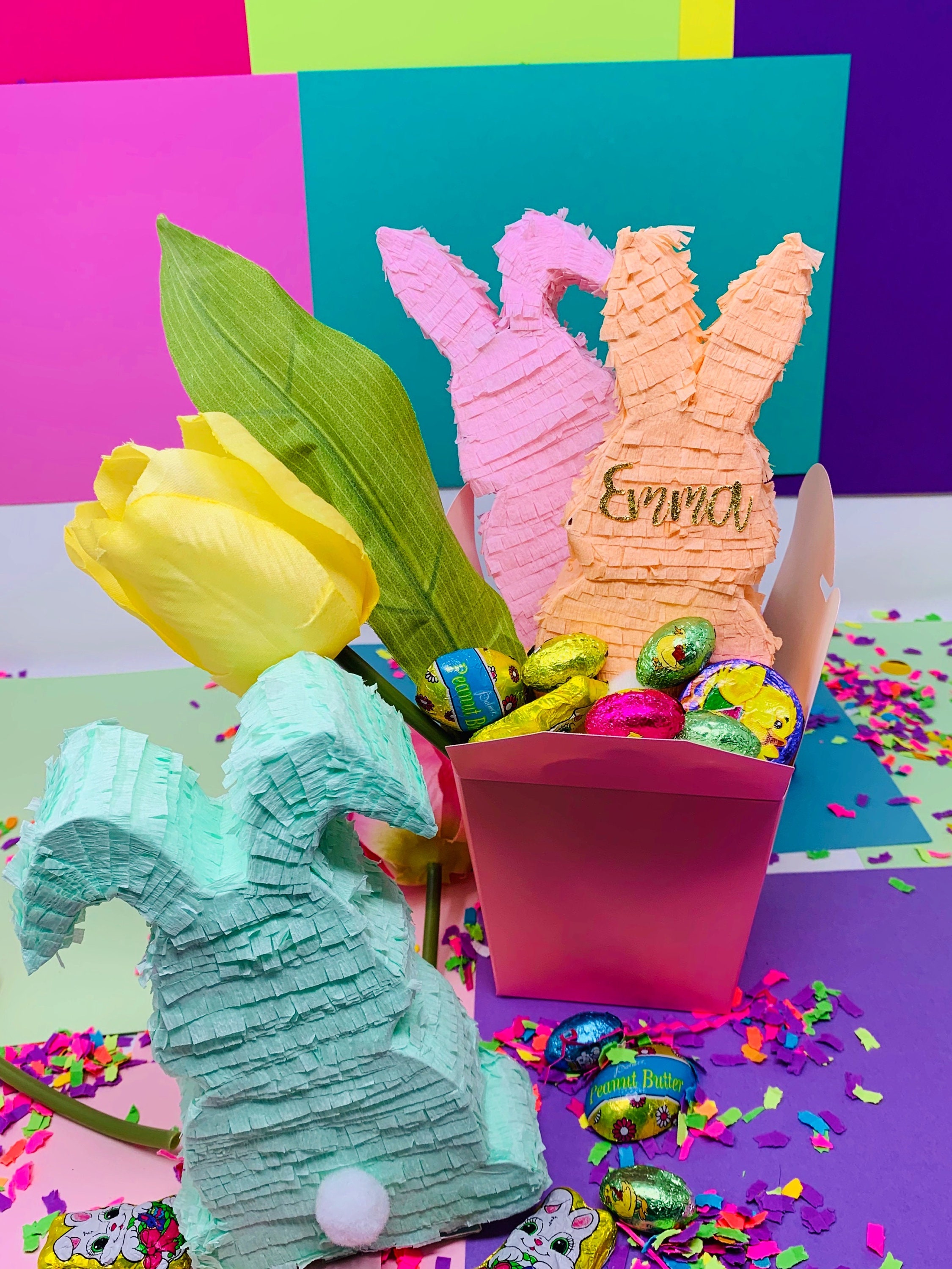 Our mini Easter bunny piñata will be the cutest addition to you your Easter decoration, Easter baskets and/or Spring Celebrations.